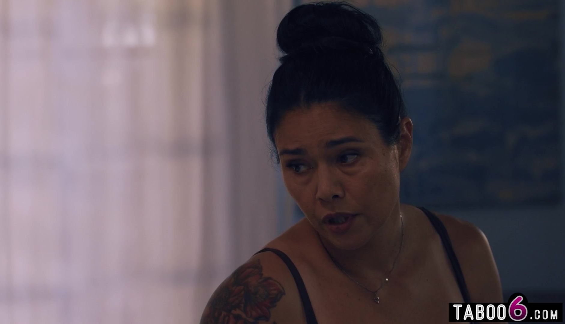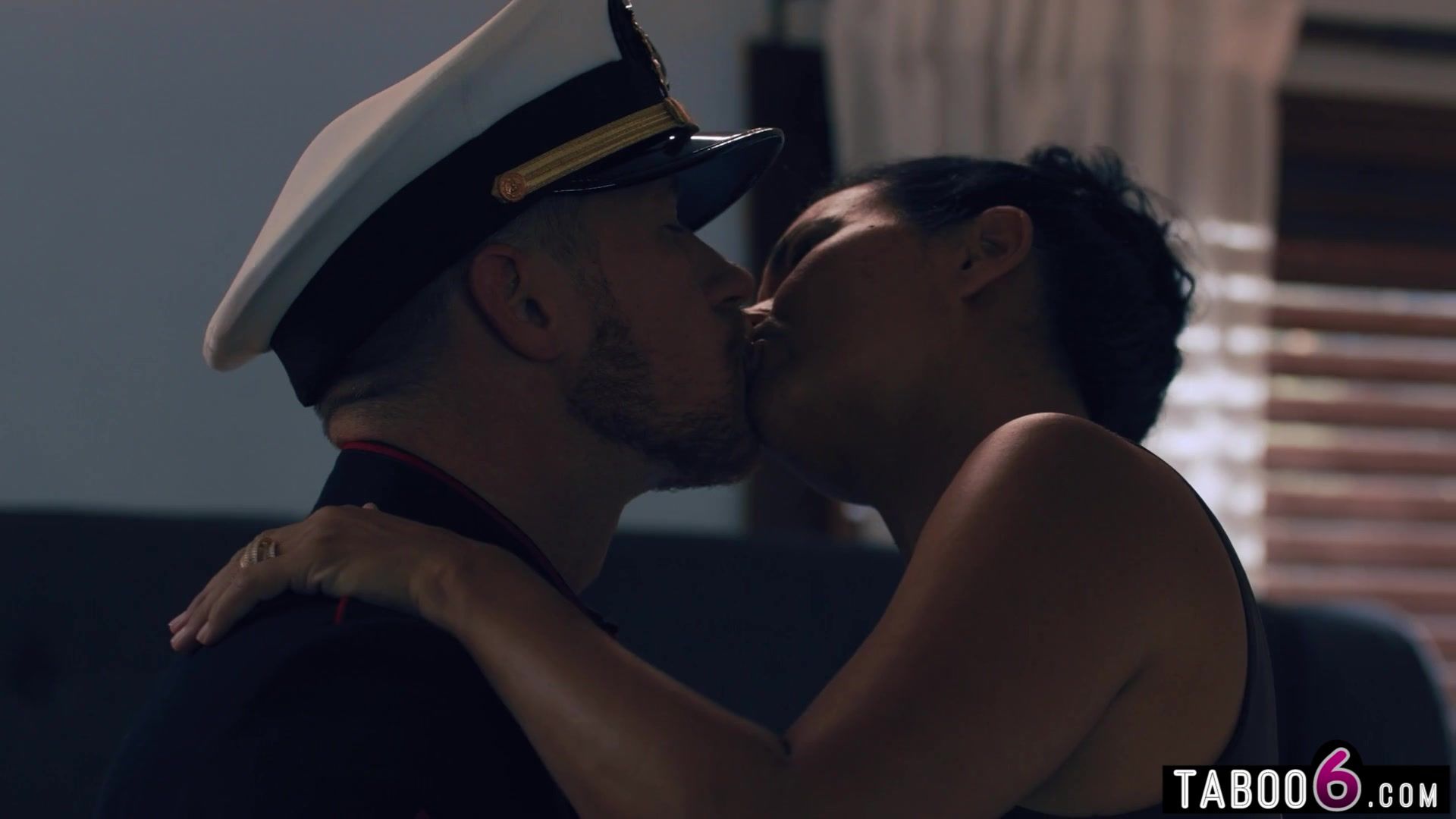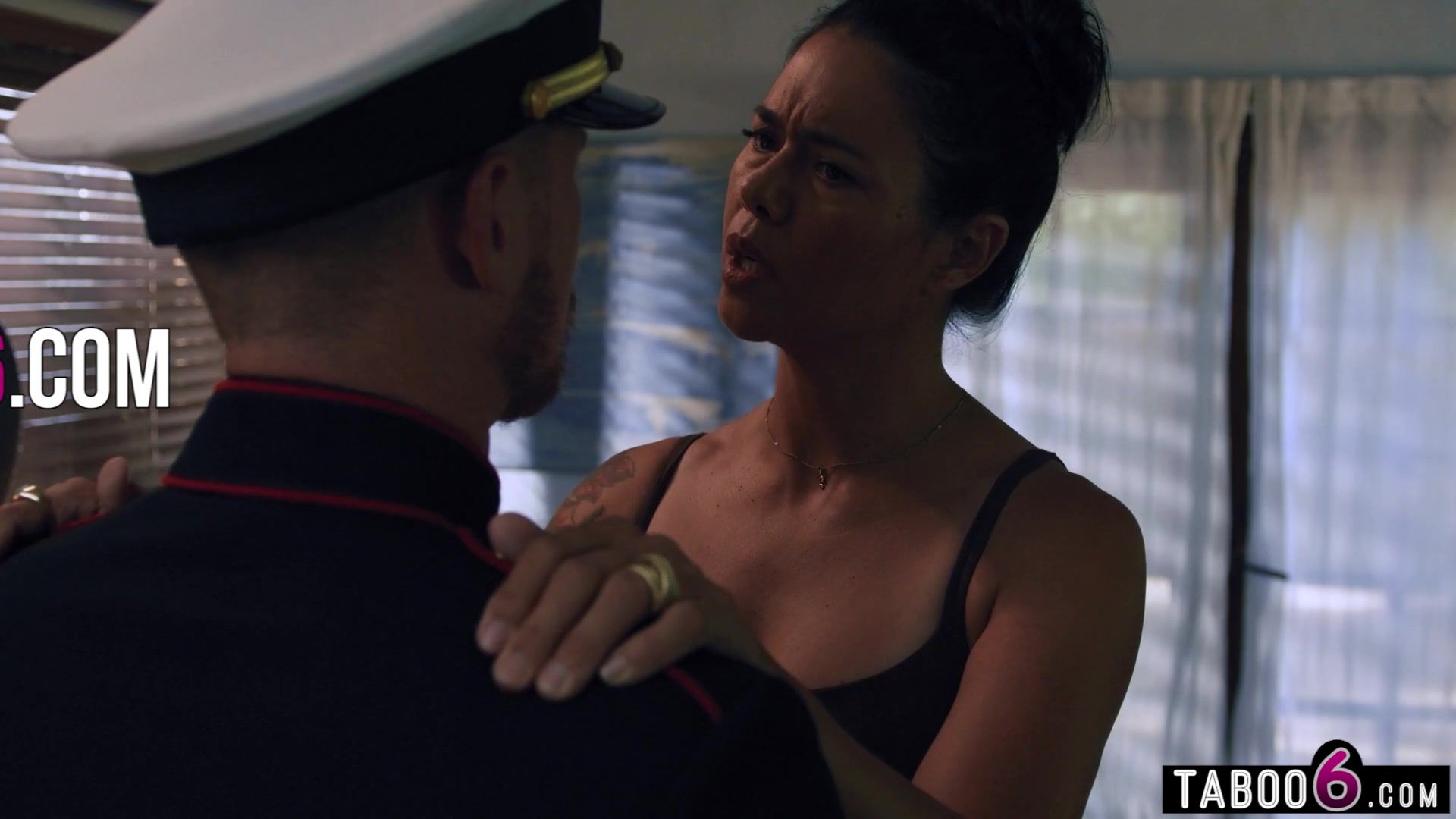 Asian MILF stepmom Dana Vespoli had stepson wear stepdad his military uniform and surprizingly it turned her on! This was really awkward but also hot she proceeded to give his big cock a blowjob before he fucked her mature cougar pussy!