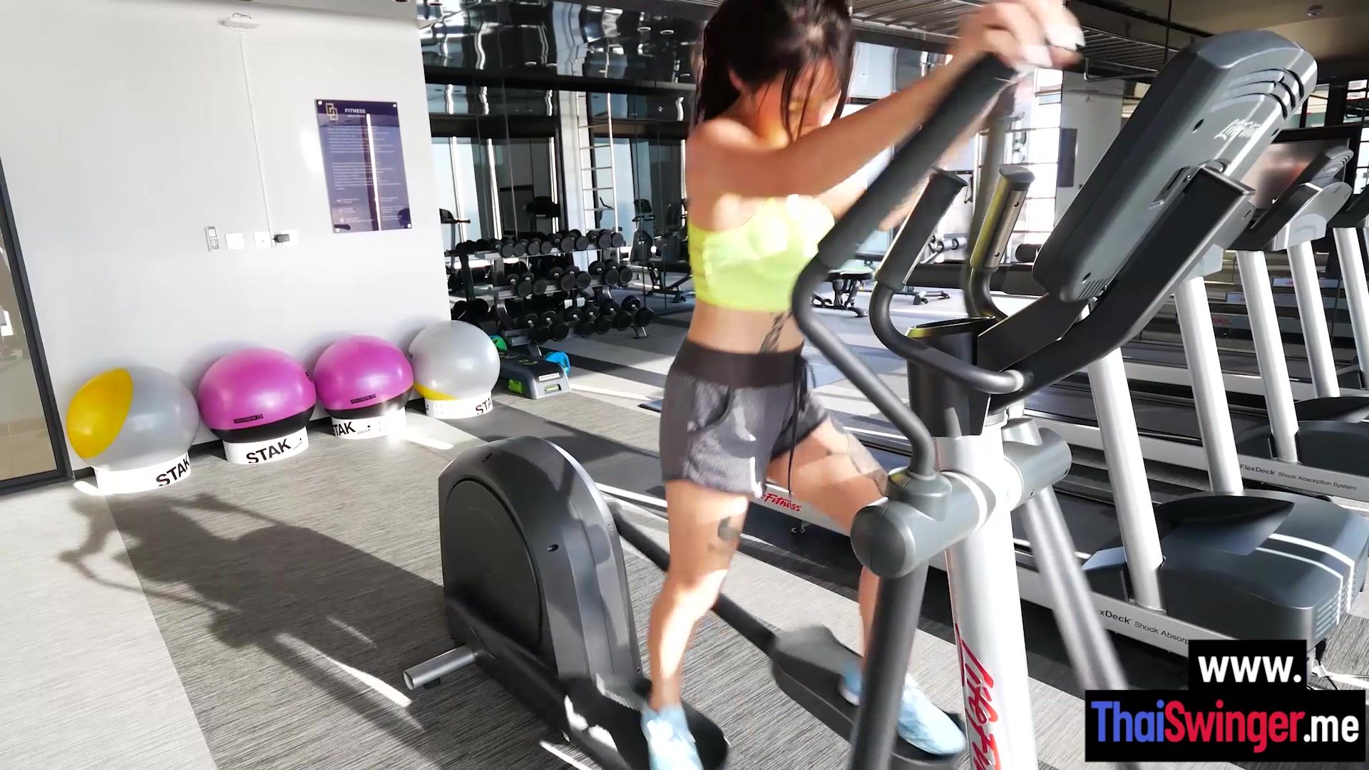 Asian teen Noomai swallowed cock and enjoyed perverted boyfriends dick while sucking it Big dick guy came and interrupted teen during the workout He pulled out his big cock and let her suck it Sexy Thai teen sucked big cock and gave an amazing blowjob
