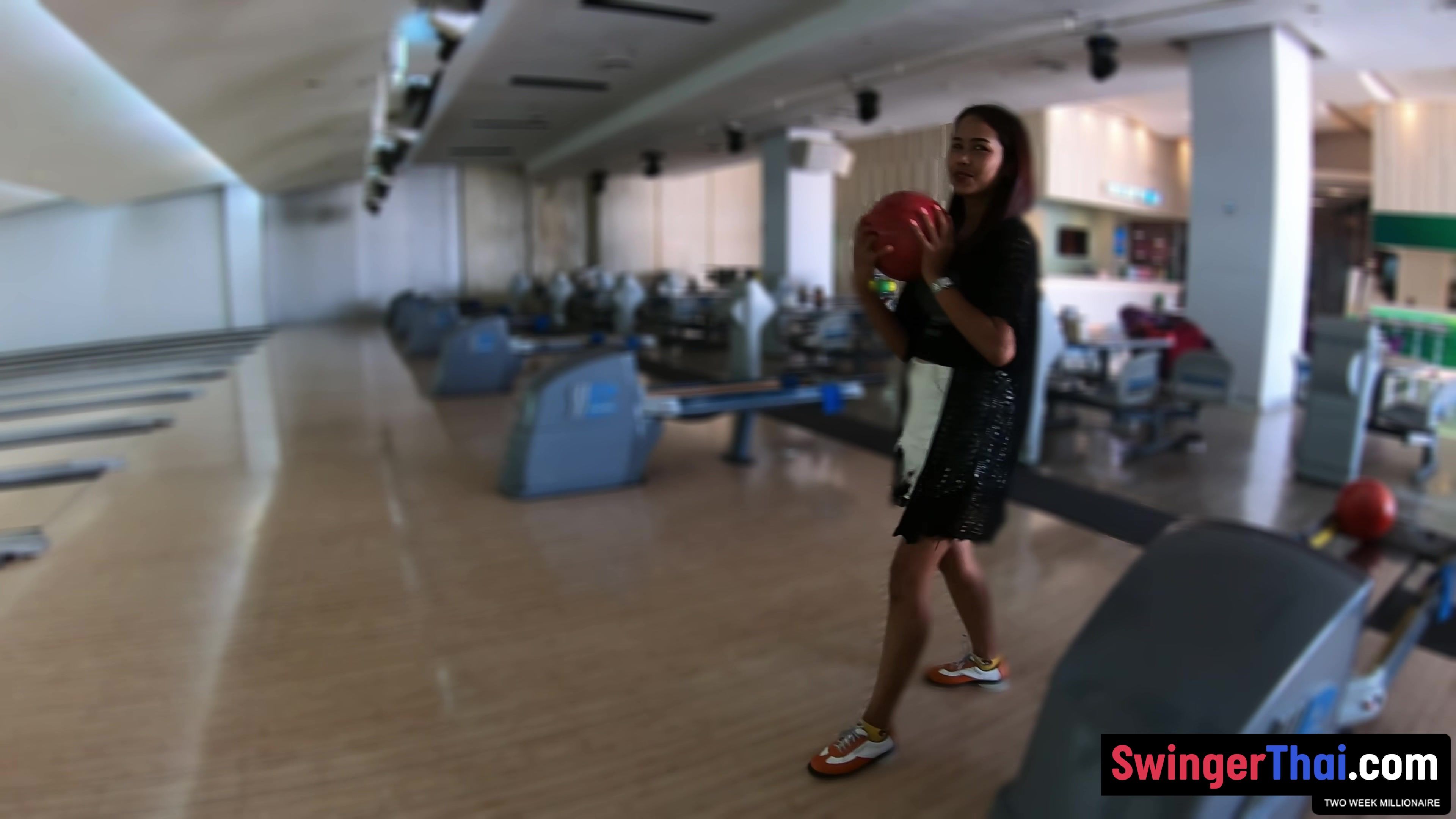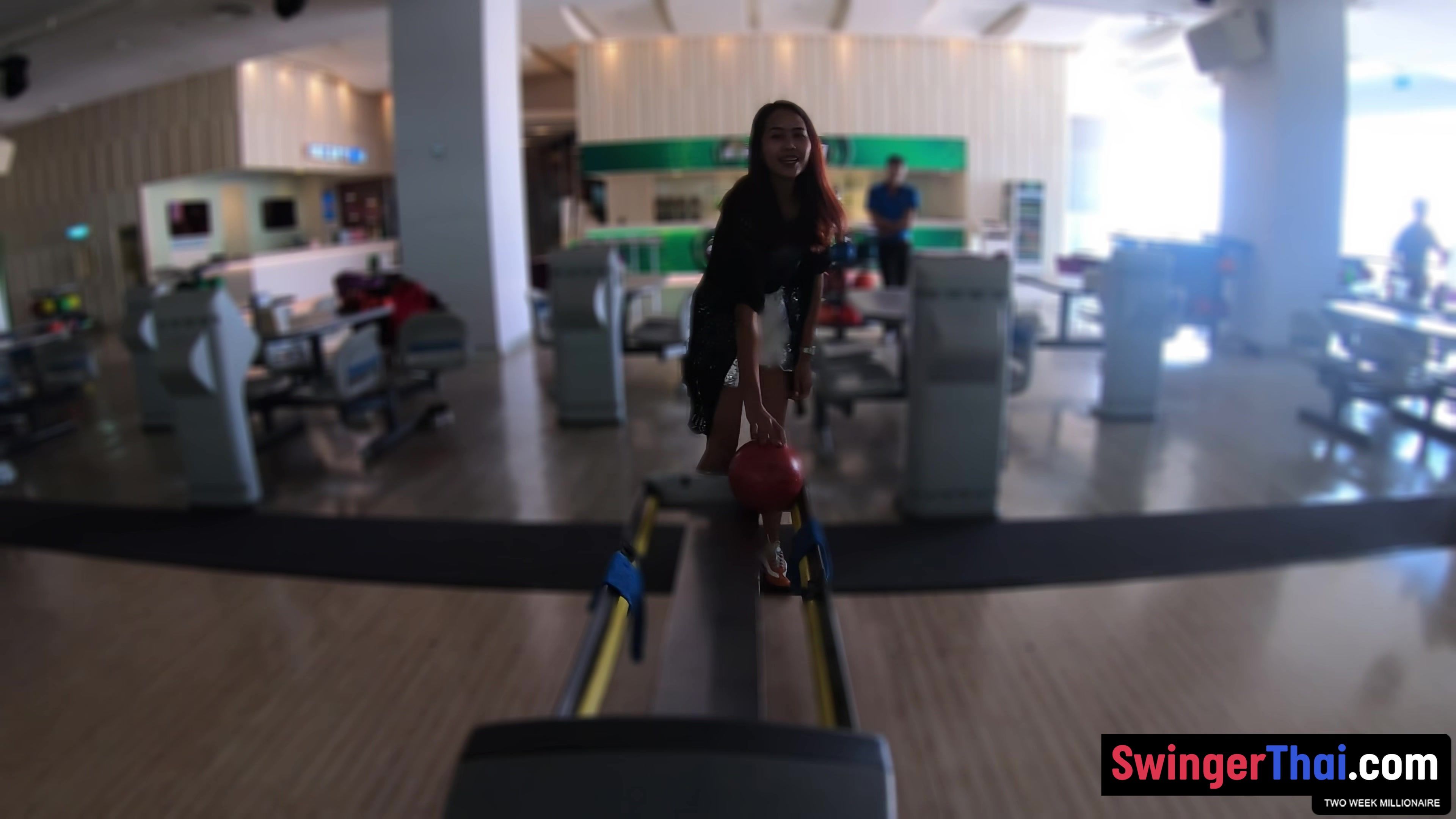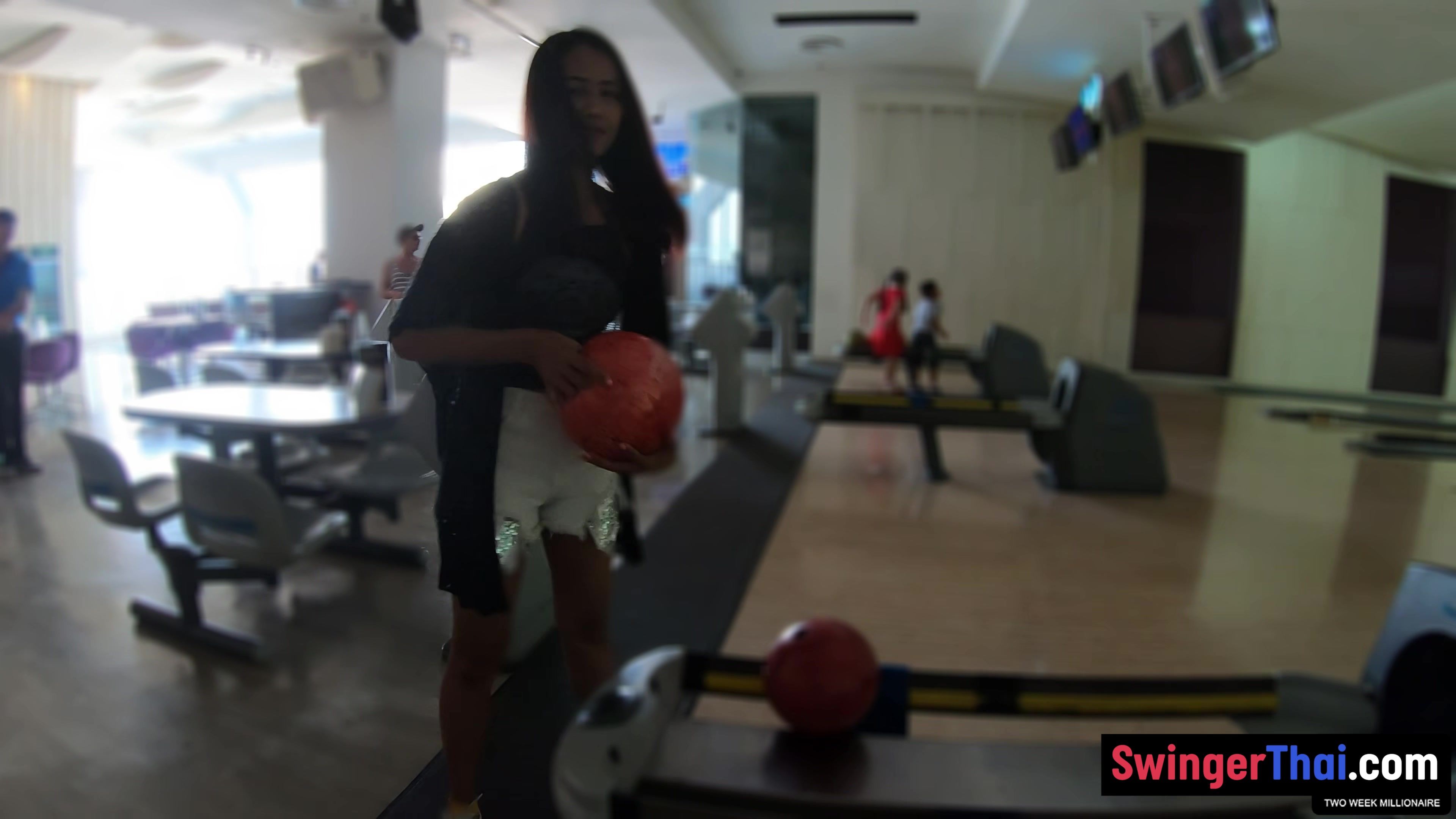 Thai MILF girlfriend on a bowling date and sucking cock after