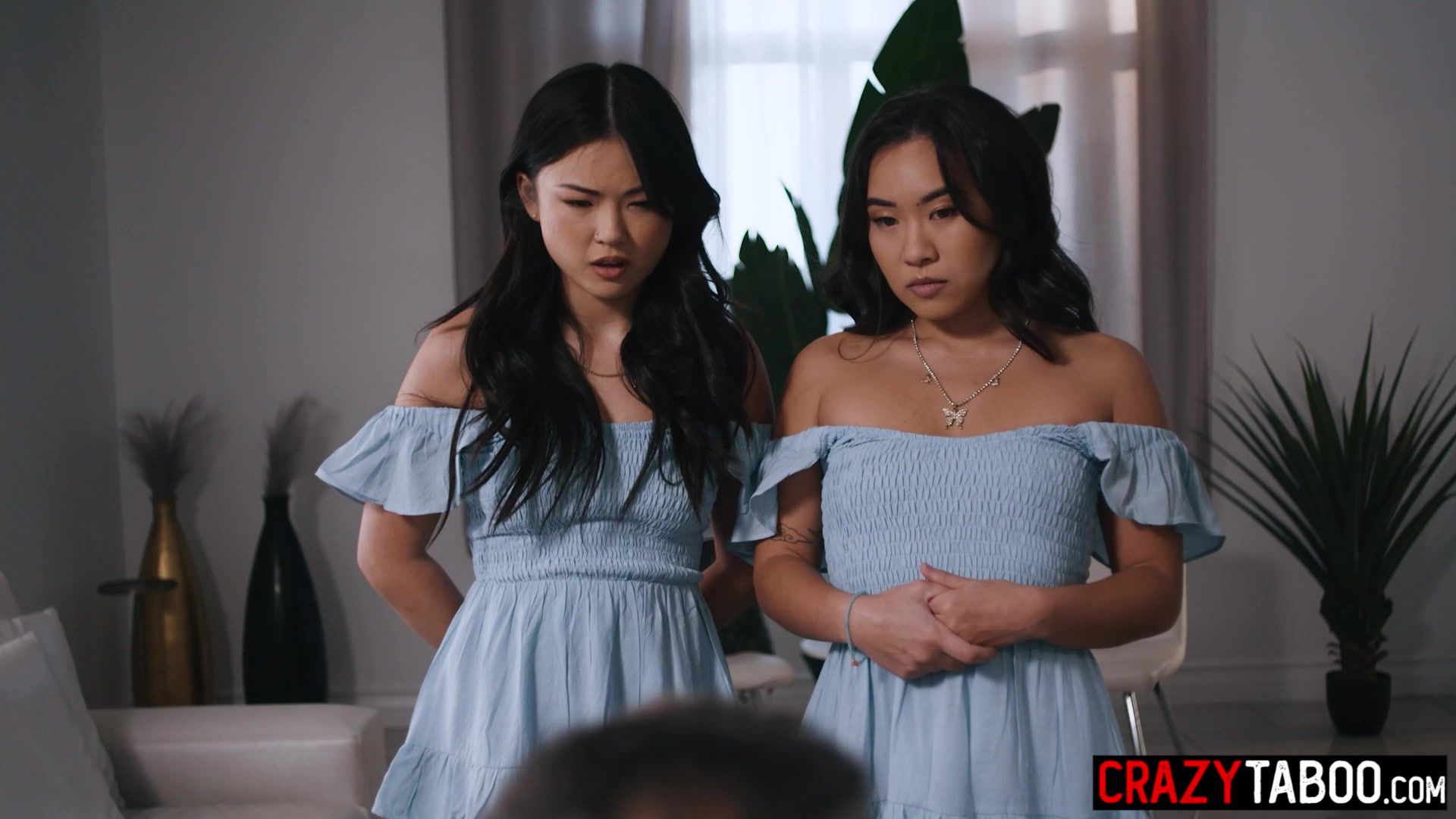 Dirty man fucked two petite Asian teens Lulu Chu and petite babe Kimmy Kimm and he enjoyed in twins threesome Sexy teen met her stepdad and his new stepdaughter After dirty talk teens gave him a blowjob and enjoyed hardcore threesome sex