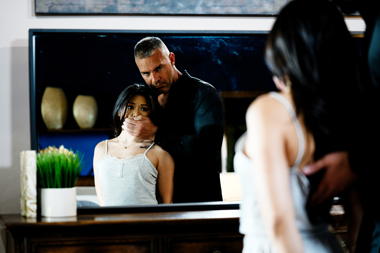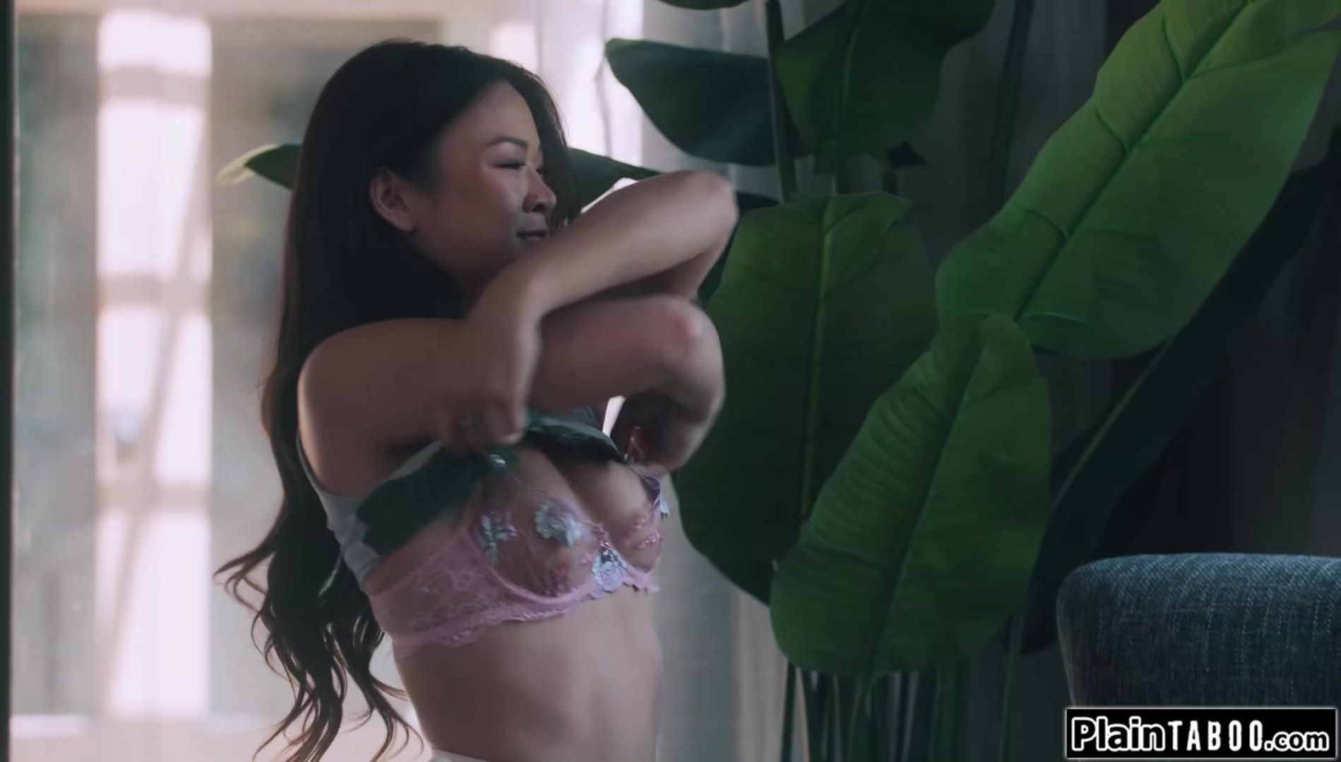 Asian Lulu Chu teases her old teacher by stripping naked ifo the window and leaves a key for him.The small tits petite brunette is startled when he stands behind her.He licks her pussy and deepthroat facefucks her before banging her doggystyle