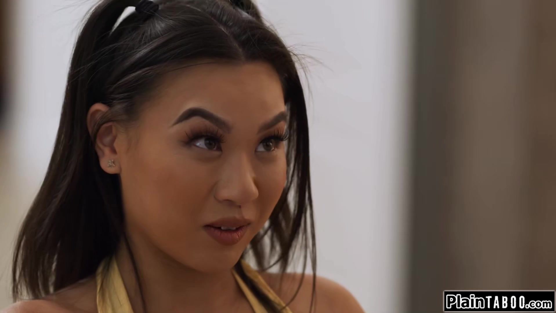Petite small tits Asian Kimmy Kimm wants to break up with the guy.She feels guilty and agrees to having sex.But is that a smart thing to do?They kiss and he sucks on her small boobs.She deepthroats his big cock and after they fucked its time to tell