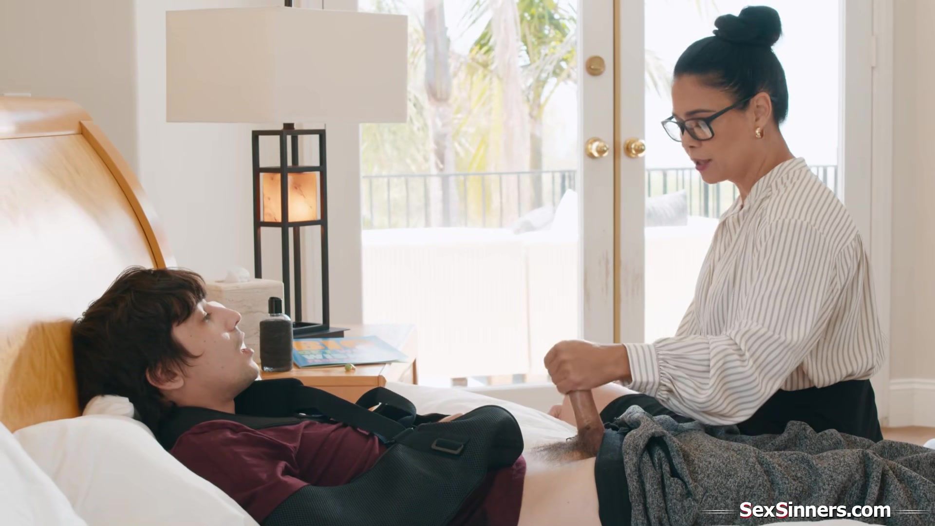 Mature Asian teacher feels so sorry for her student.With two broken arms he cant even jerk off.The milf decides she could give him a HELPING HANDjob.Now that shes gone across the line anyways she deepthroats and tittyfucks him before riding his dick