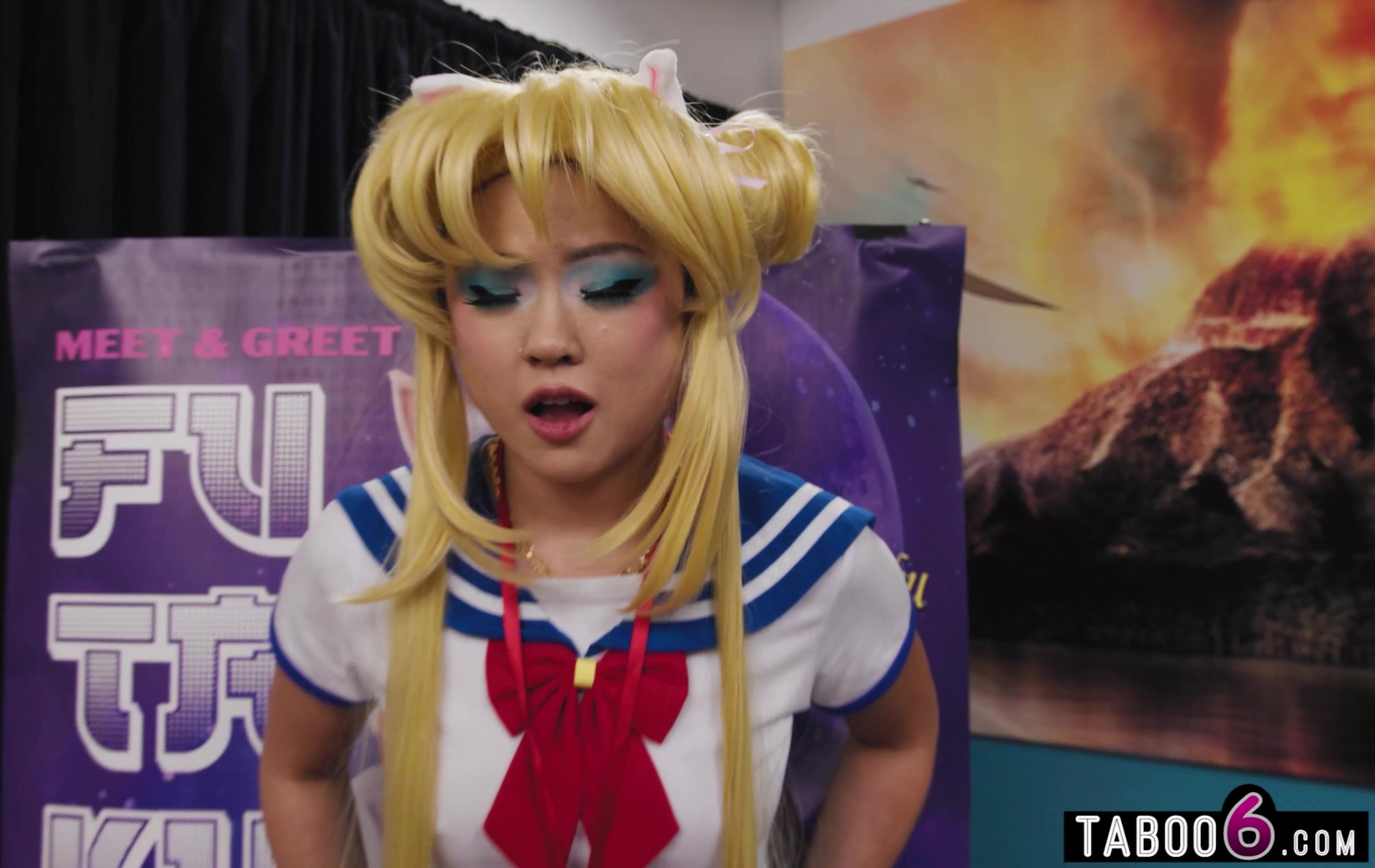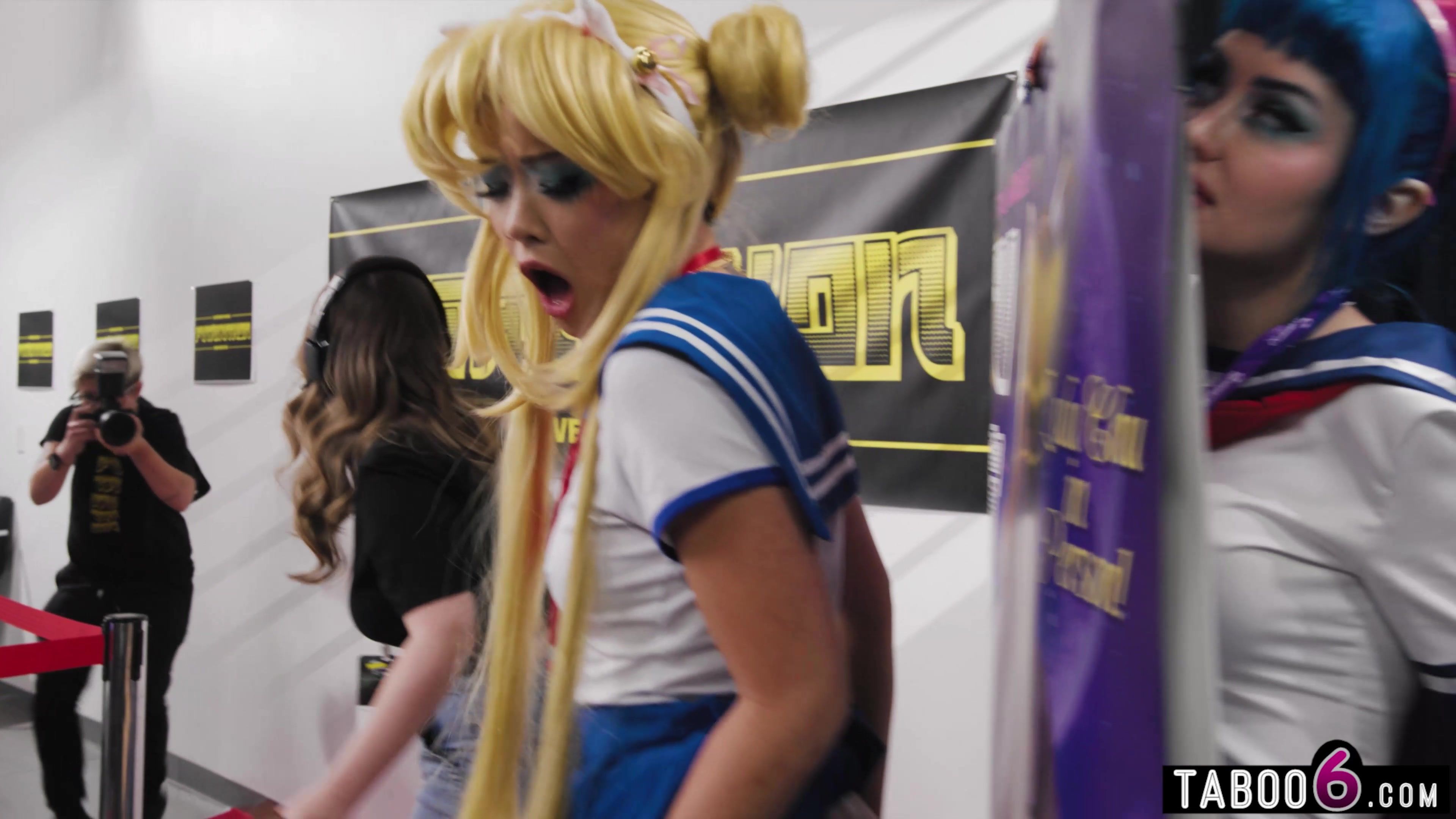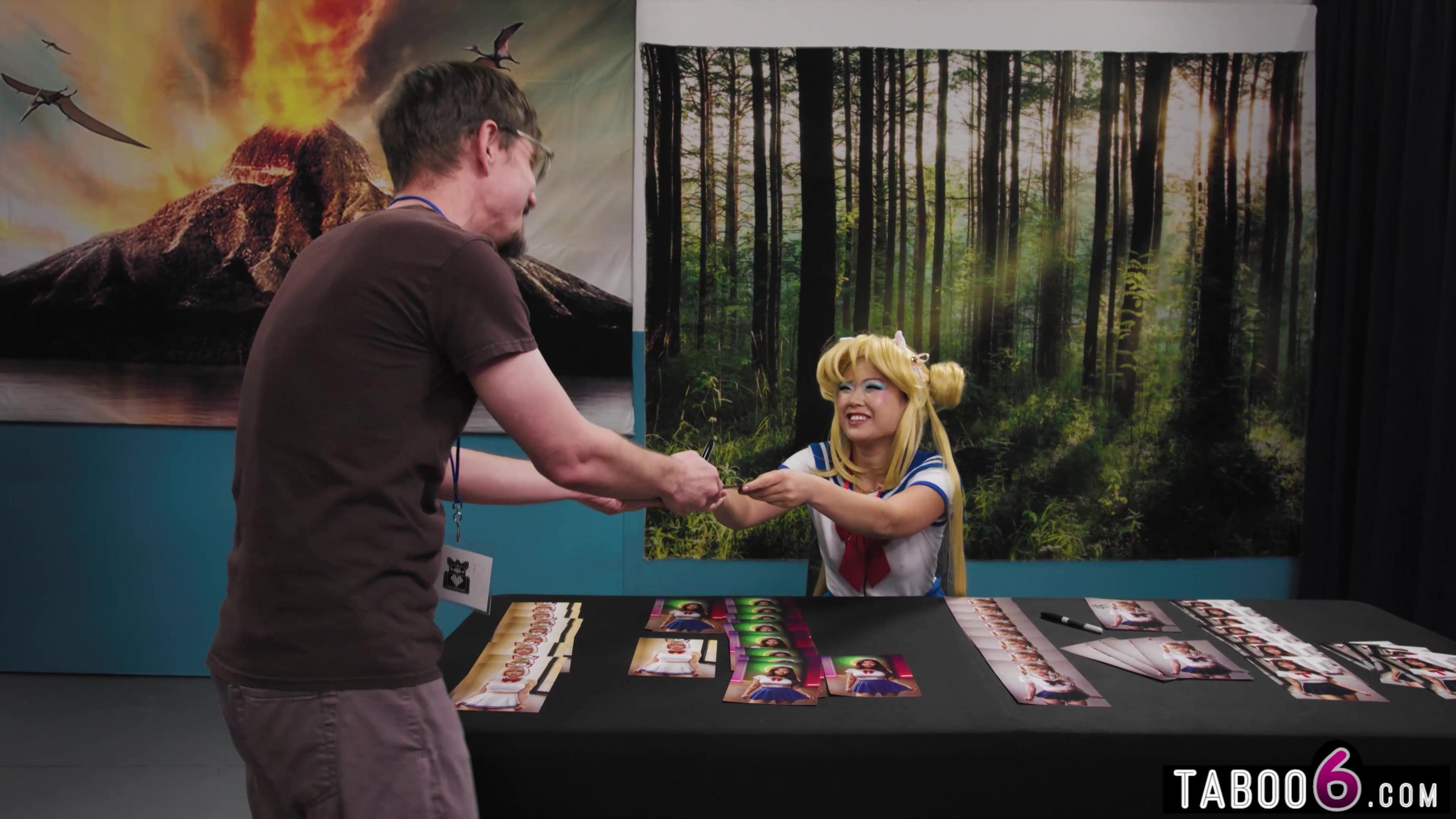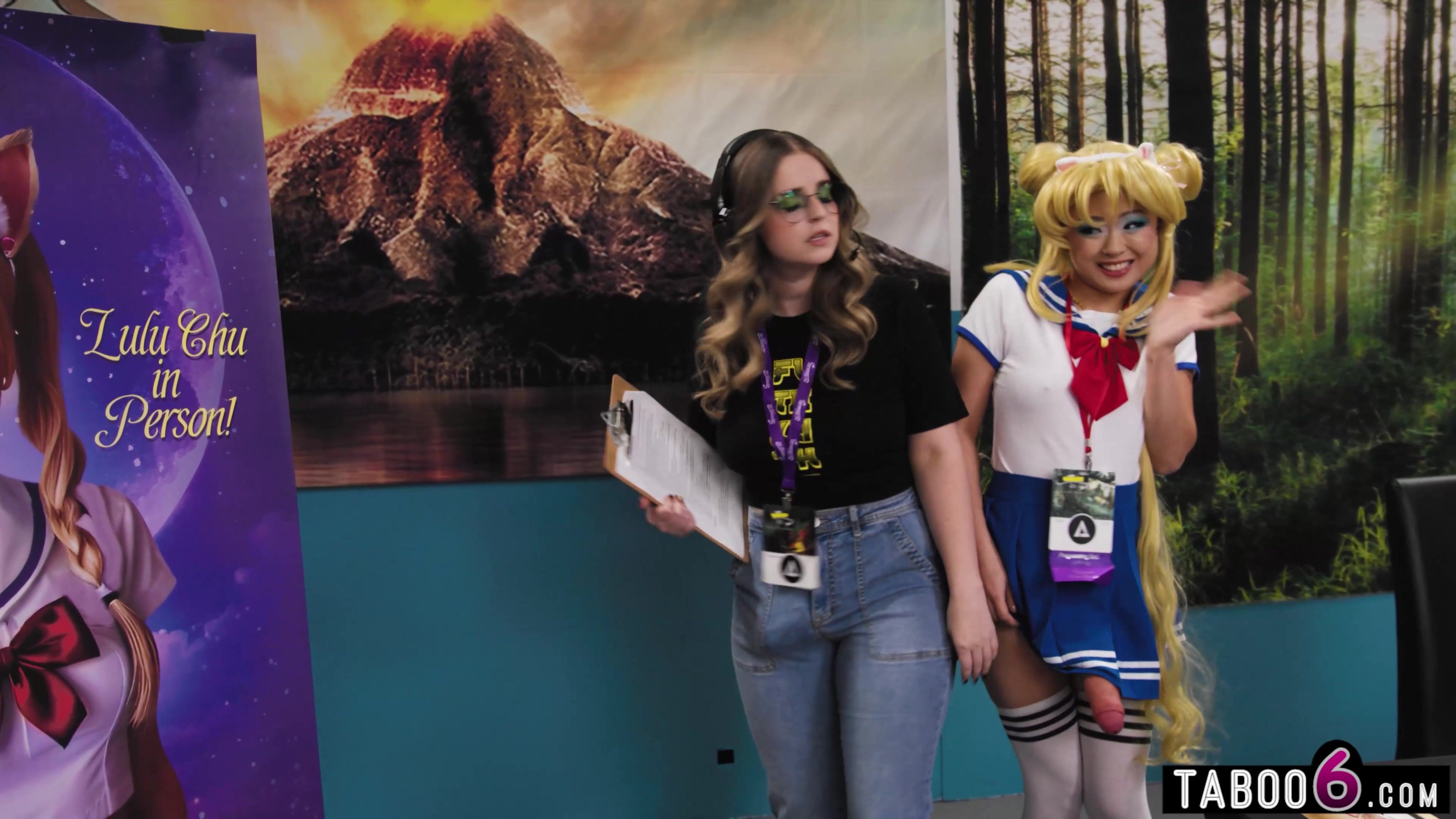Futakuthon convention with Futa star Lulu Chu and a curvy fan girl Jewelz Blu became an insane lesbian threesome after one fucked a poster and jizzed on the manager Codi Vore her face with a huge facial cumshot!