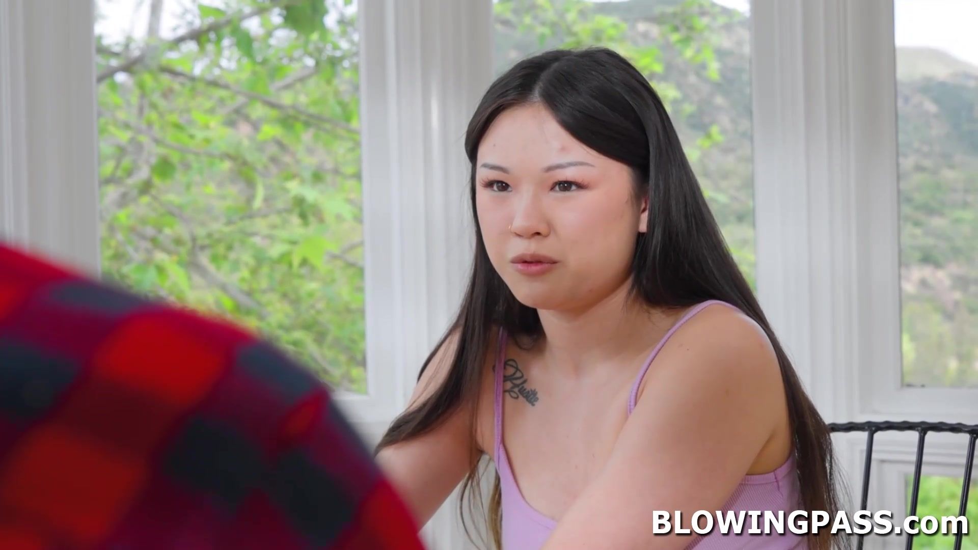 After her tutorial session Lulu Chu asks her instructor if he can help her practice blowjob. The guy didnt see it coming but nevertheless he is down for it. He sucks her small tits then licks her pussy before letting the teen deepthroat his big cock.