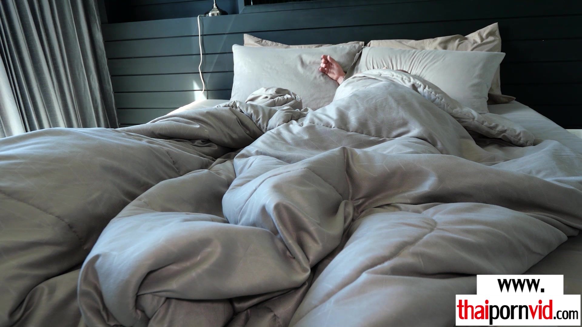 Naughty amateur Thai teen Tuk with small tits wakes up and she needs to get her morning sperm dosage so she starts sucking her european lovers big white cock then she hops onto the throbbing dick and taking a nice ride on it