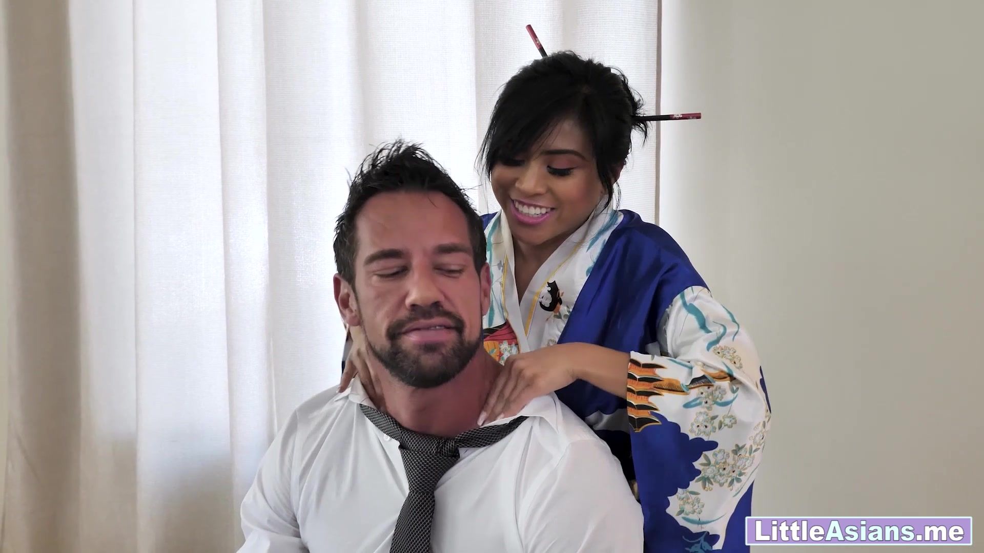 Perverted big dick client are Asian teens Ember Snow pussy and enjoyed it for the lunch before she sucked his big cock Petite big ass teen served her wet pussy for the client After pussy licking and blowjob small tits Asian teen got fucked hard